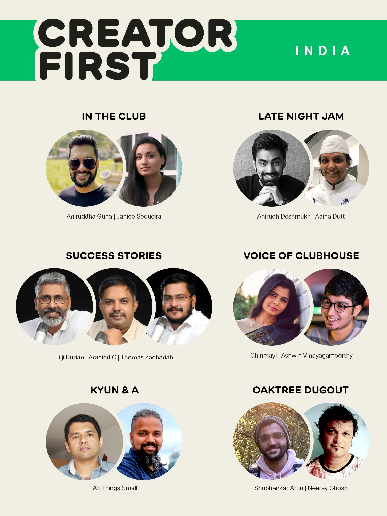 As a reminder, Clubhouse will help these individuals and teams behind these selected shows by providing financial, logistical and promotional support during their course in the program, so that these creators can do what they do best - create amazing shows that cater to the unique needs of our Indian audience. Without further ado our first class of Creator First India winners are: