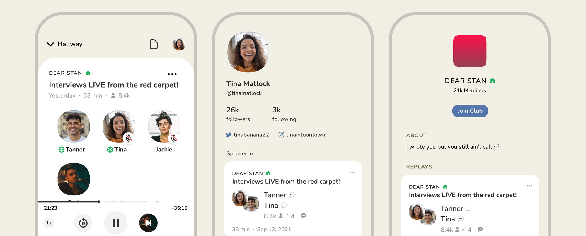 Room creators will have the ability to download the audio so they can edit it and use it wherever they want — as a podcast, a clip on YouTube, an Instagram story, a TikTok video, an embed in their article or newsletter, or anywhere else. The replay will also be discoverable within Clubhouse — from club pages, speakers’ profiles (unless they choose to hide it), search (starting next week), and more.