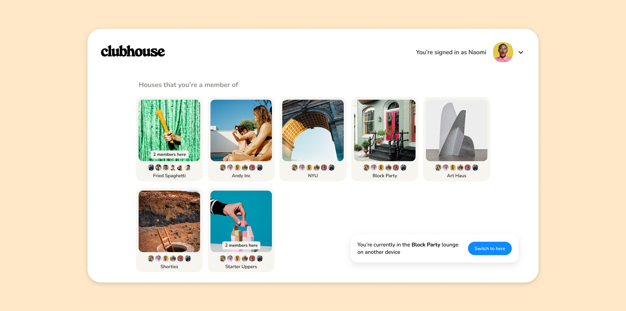 Ready to give it a try? Turn on your computer, open a new tab, and head to https://www.clubhouse.com/signin where you can find all the houses you’re a member of.