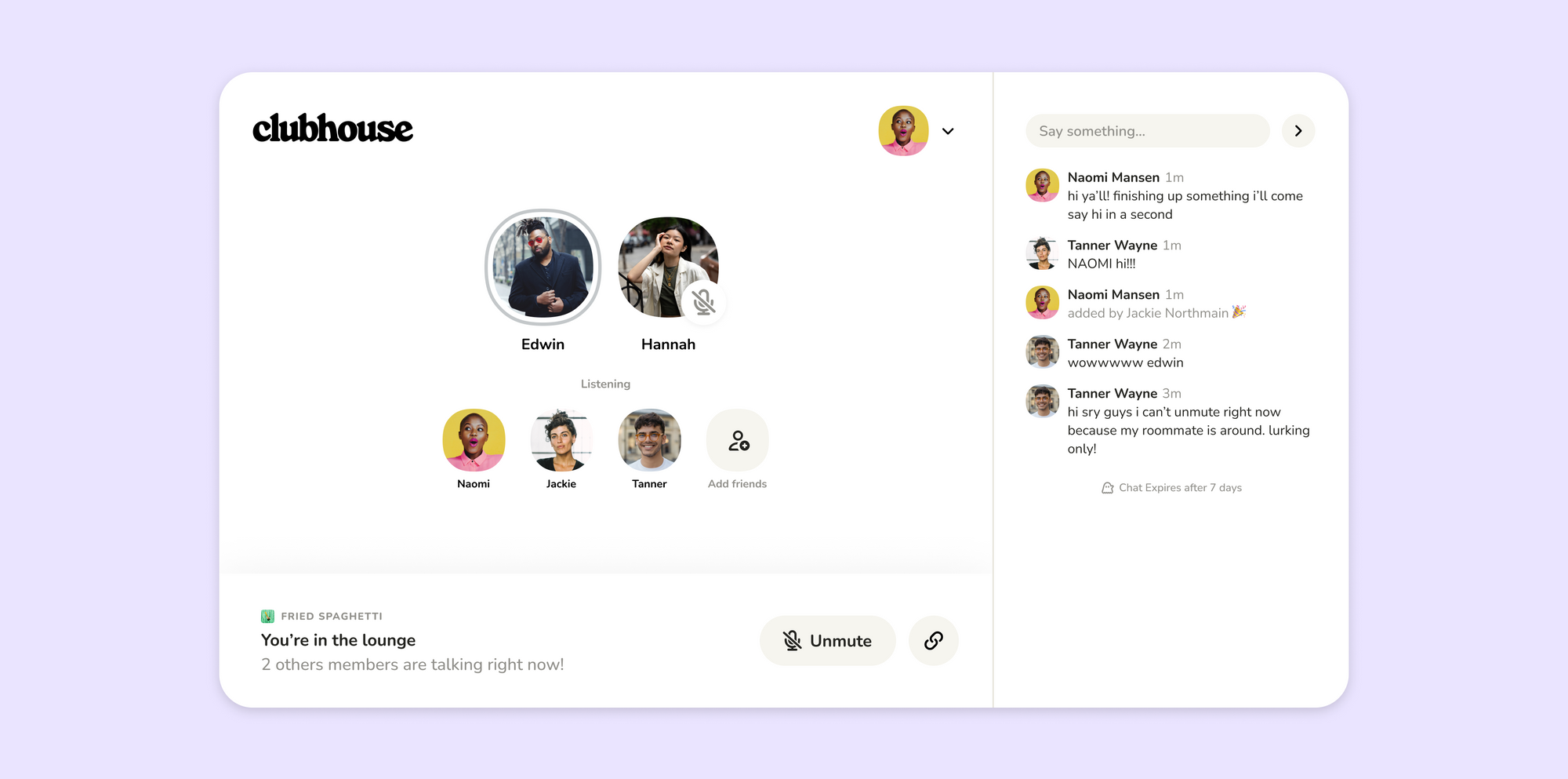 We know that many of you have been asking for a desktop experience of Clubhouse, so we're thrilled to announce a web version of one of our beloved features. Today, we’re releasing House Lounges for web, an always-on way to catch up and hang out with your friends on Clubhouse. Yes, that’s right! You can now stay connected with your friends and communities without always being connected to your phone 🤯. Let’s talk about it.