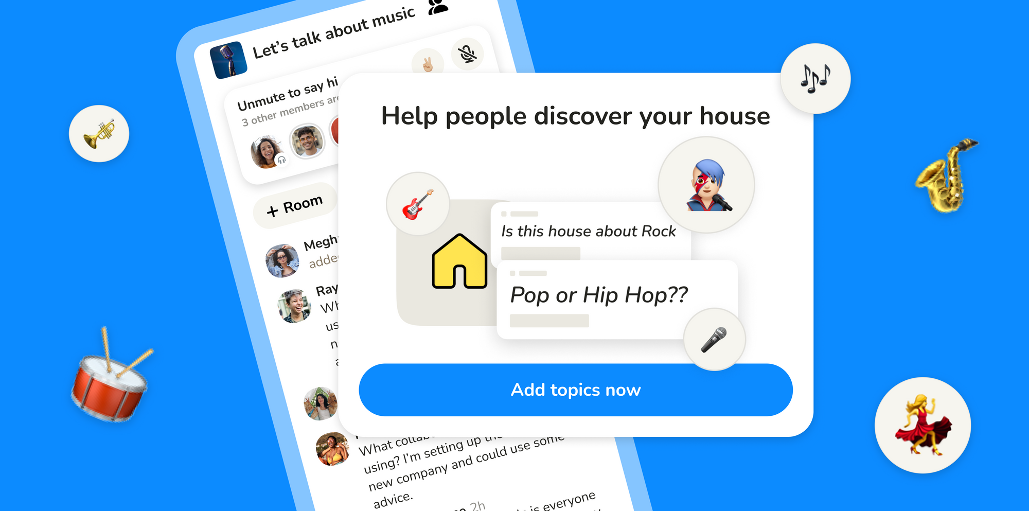 We’re excited to see so many new Houses popping up every day! And now, we’re making it easier for you to catch the attention of community members who might want to join your conversations by letting you add Topics to your House.