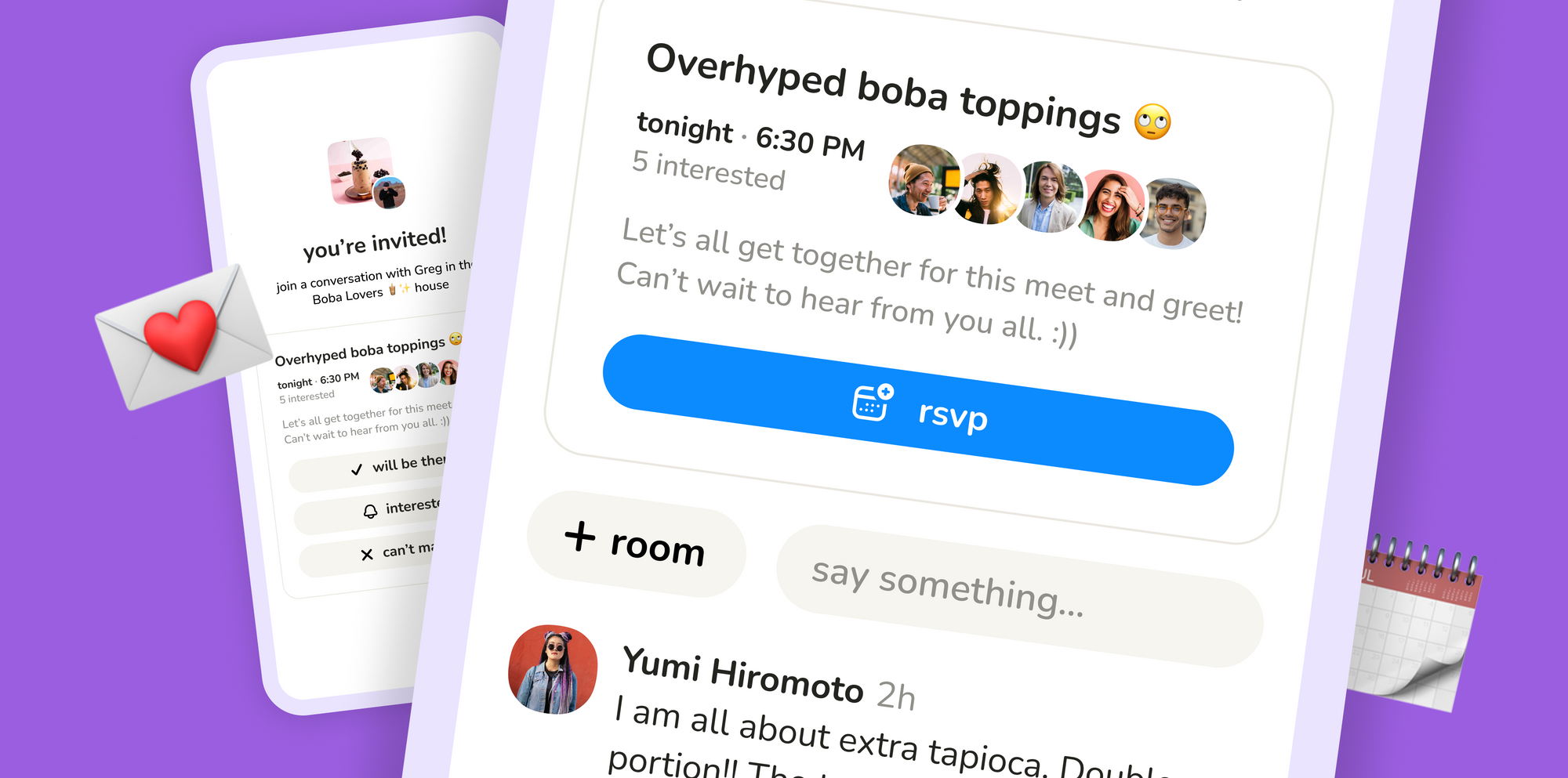 Whether it's a casual get-together or a full-on party, House founders can schedule House Events to suit the kind of shindig they have in mind. Keep it close-knit for House members only, or make it open to everyone. Also, plan for who’s showing up and send automatic reminders leading up to the event with RSVPs.